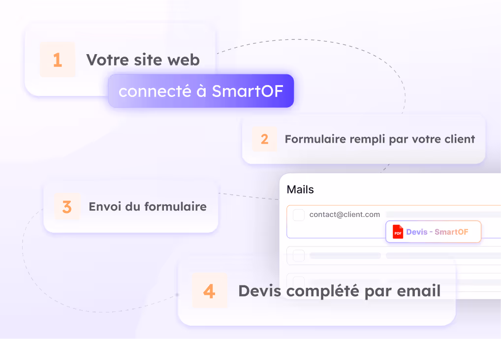 Finis les copier-coller interminables : SmartOF centralise votre catalogue, automatise vos devis et accélère vos signatures. Gagnez en réactivité, en conformité et en visibilité commerciale.